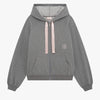 The iconic satin-trimmed sweatshirt is reinvented as a full-zip hoodie.
