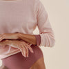 This warm-up sweater is the ideal model to warm up before each class. Made of a soft, flowing knit, it is a warm and comfortable piece. Its rounded neckline allows to clear the upper body and to emphasize the head carriage. The tone-on-tone jacquard R is a discreet and elegant reminder of the brand.