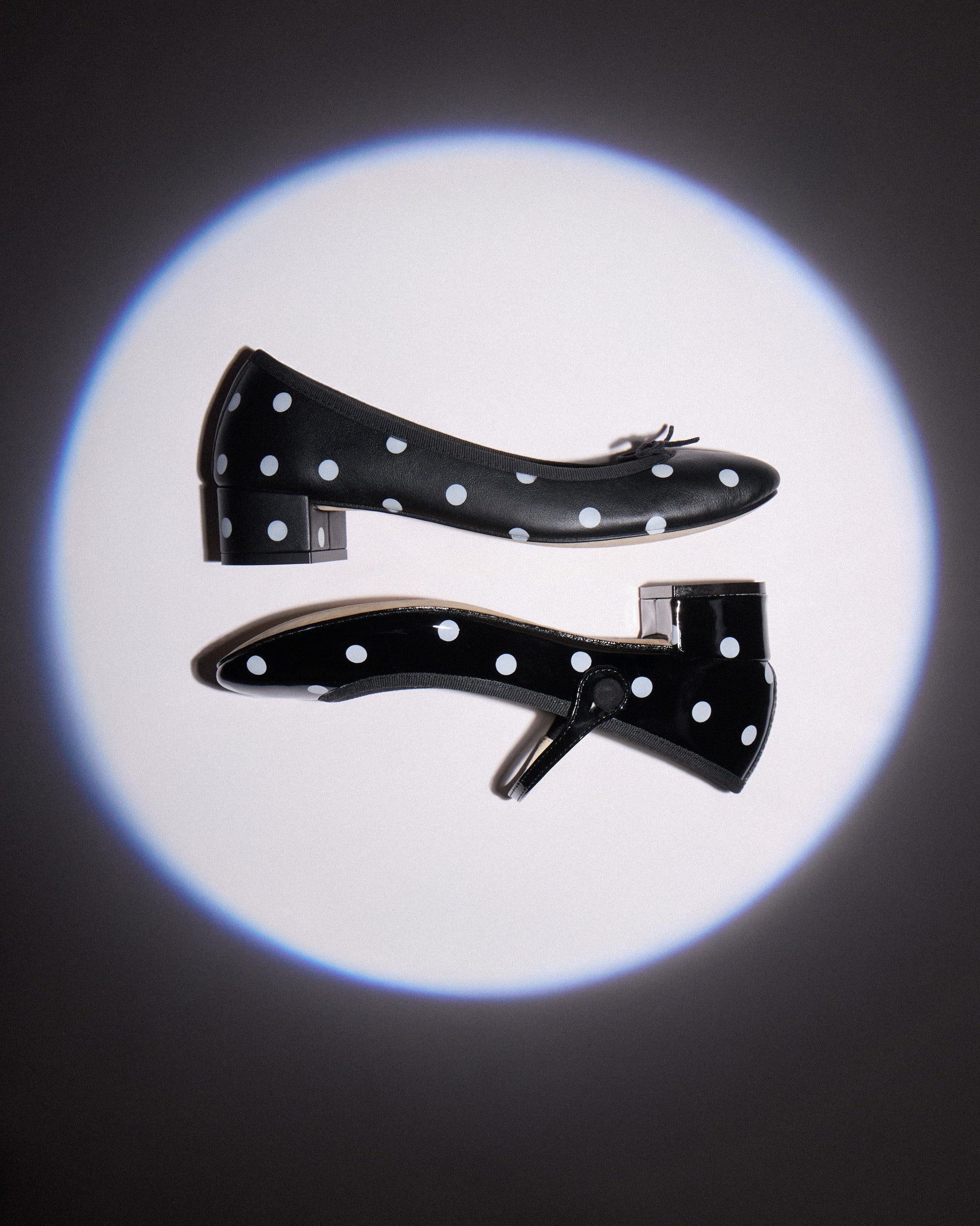 Crafted in France in Repetto’s workshops using the brand’s emblematic stitch-and-return technique—an iconic hallmark of its craftsmanship since 1947—these styles stand out with their graphic polka-dot finishes, applied after construction through a hydrodipping process. Each pair becomes a singular, one-of-a-kind creation, where Repetto’s timeless elegance meets the visual experimentation of Comme des Garçons.