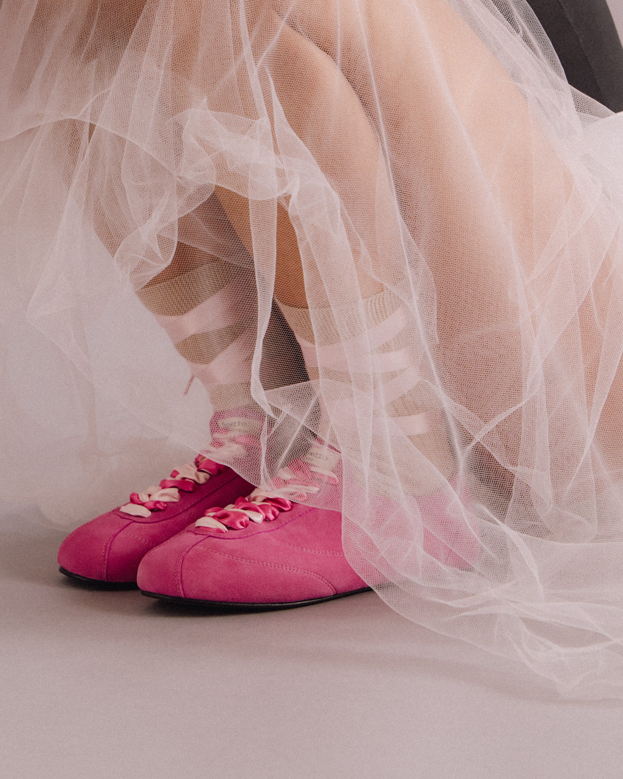 The Tennis Silk reinvents itself this season with four new pastel colors: Rose, Limoncello, Eden Blue, and Cashmere. More contemporary and assertive than ever, it can be worn with legwarmers for a balletcore look or as part of your everyday wardrobe, adding softness and light to any outfit.
