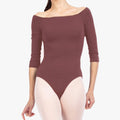 This ladies leotard with 3/4 sleeves has an original cut with a square neckline. It can be worn on the shoulders, in order to underlines the upper body and the head bearing. The leotard follows the lines of the body and ensures precise and graceful movements