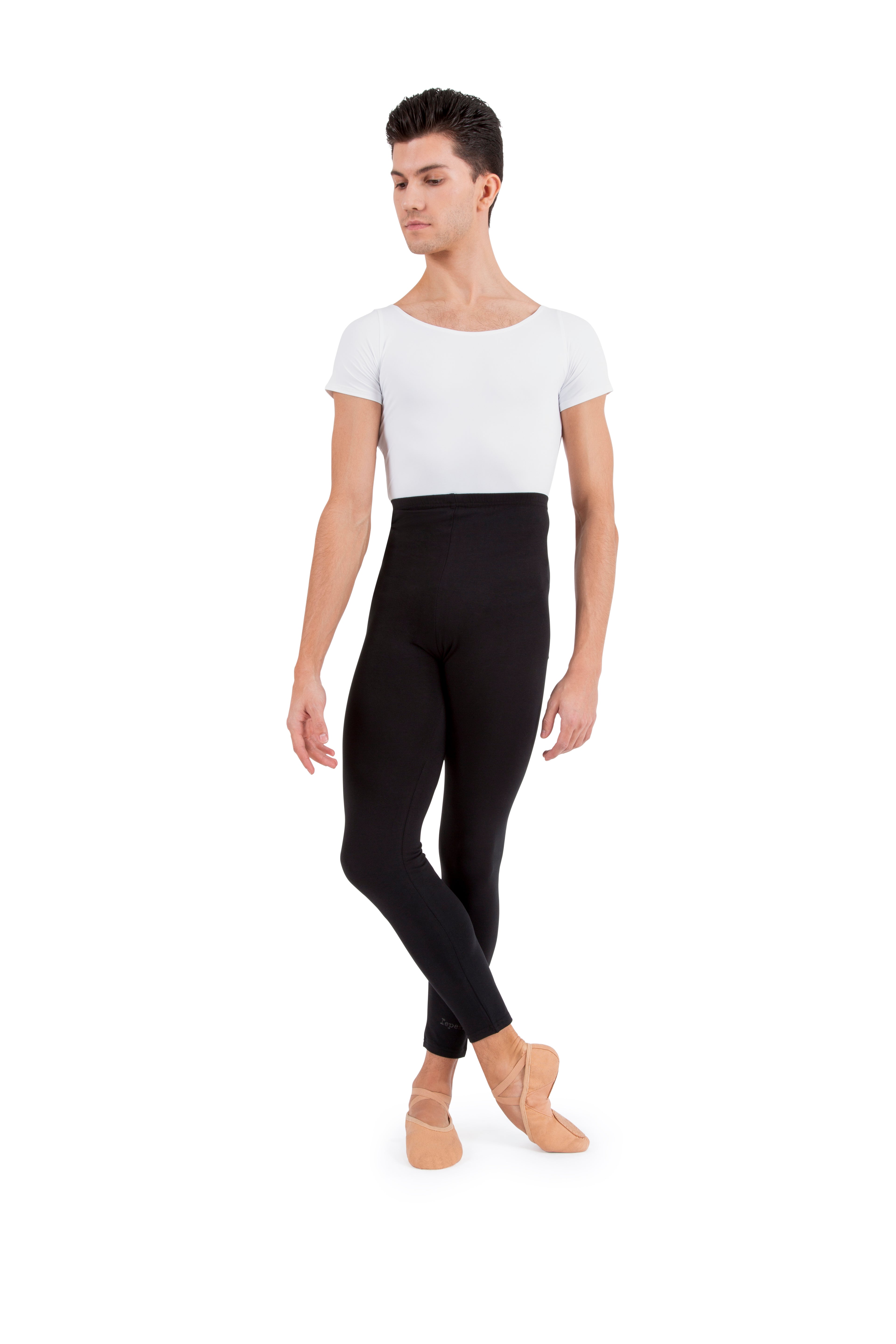 These black opaque footless tights for boys are a dance essential. Elastic waistband. Crotch gusset for comfort. Transparent transfer of the Repetto logo on the front.