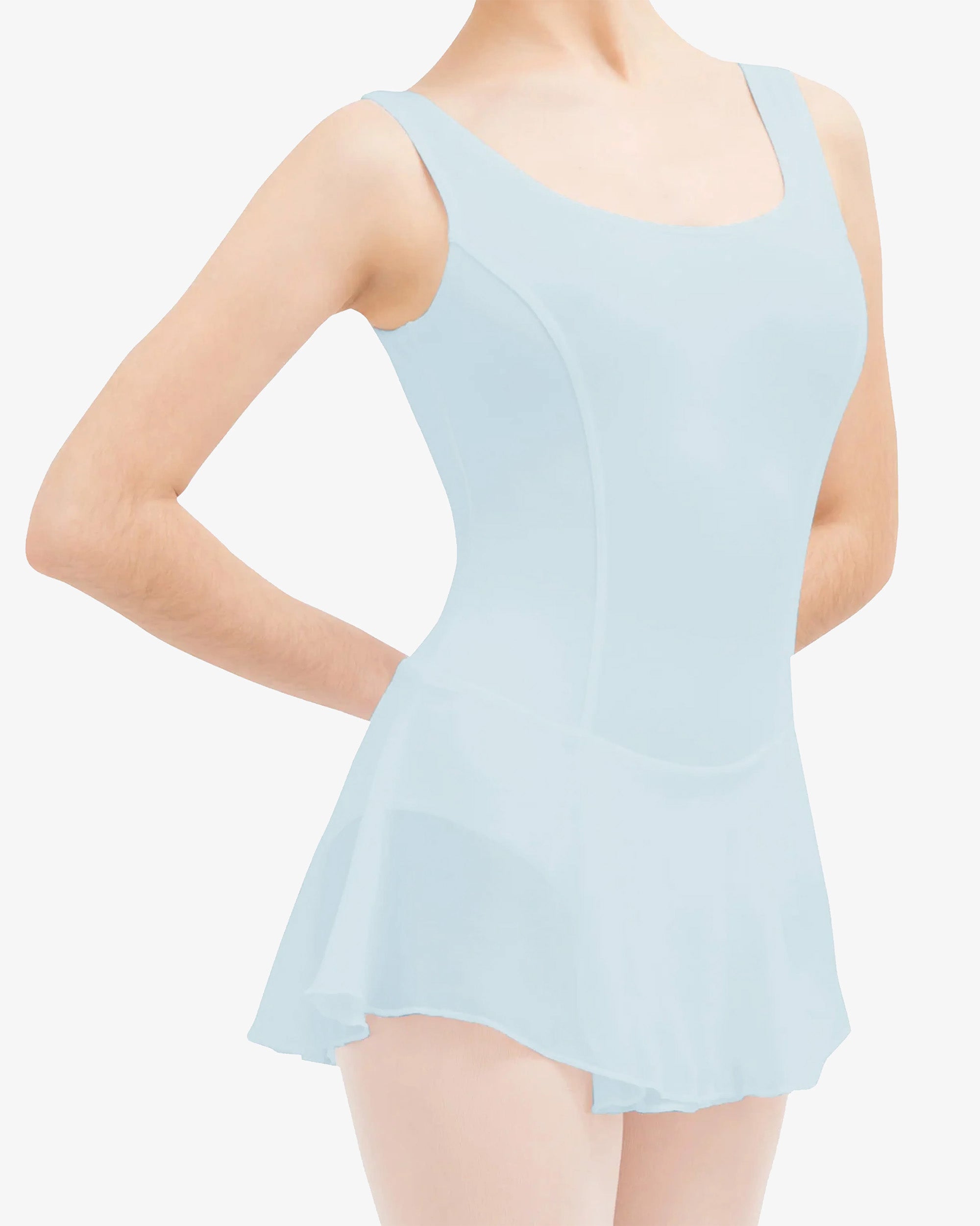 This tunic with large straps has for a very good maintain. Its chiffon skirt allows a good visibility of the work, while the princess seams and the round neckline enhance the silhouette of the dancer. Available in many colours, this style is particularly suitable for the different levels of conservatories.