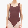 Ladies leotard with large straps. The round front neckline provides a perfect maintain of the upper body while allowing a great freedom of movements. The fancy shape in the back and the chest seam underline the classical aspect of the style. This model has an integrated breast support. Available in child size and in many colours this is a perfect product for the different levels of dance schools. Transparent transfer of the Repetto logo on the back. Mat aspect.