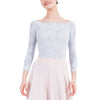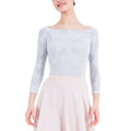 This top is an exclusive creation for Repetto made in France in a stretchy lace. Its large boat neckline is designed to be worn on the shoulders, in order to underline the upper body and the head bearing. The lace graphic is a composition of rosette designed with different points of lace. This model can be worn on a leotard, on a bra or over underwear. It provides a feminine and distinguished look.