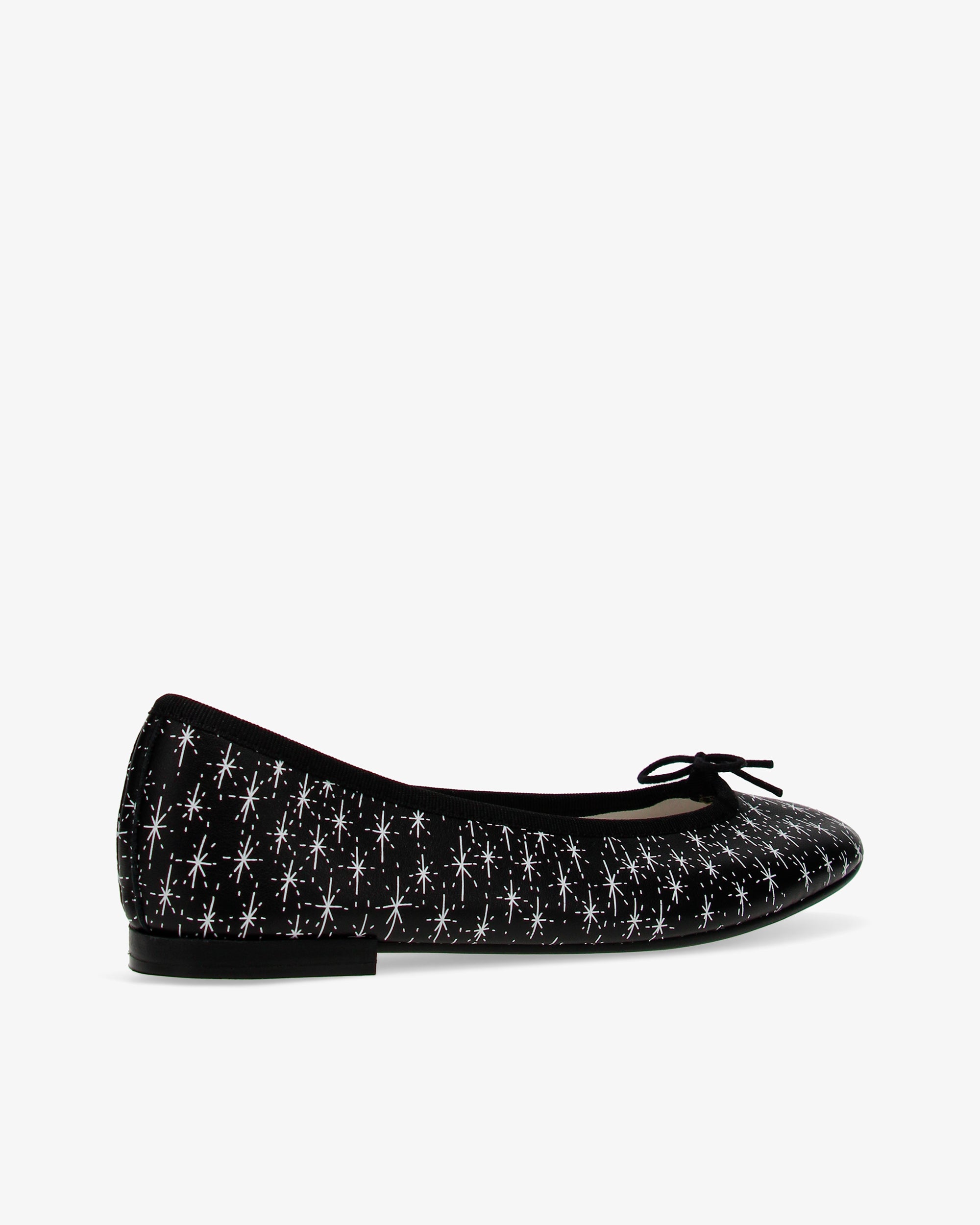 Repetto has collaborated with Japanese artist Shogo Sekine on an exclusive collection where art meets movement. The result is a unique capsule collection, a delicate combination of Repetto's signature refinement and the artist's vibrant graphic universe. The collection features two original patterns by Shogo Sekine, each revealing a facet of his aesthetic. The Star motif, built around the artist's signature stars, reflects an intuitive and creative approach, while paying tribute to Repetto's heritage, where the star refers to the principal dancer.